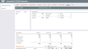 When performing maintenance on a household, this screen shows a financial summary using all of the data gathered on the previous application screens. In addition, the system calculates ratios and scores them using your credit union's configured scoring system. It shows this data for only the selected person.