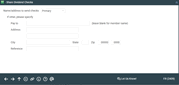 If “Other” was selected, use the remaining fields to define a Pay To name (leave the name blank to use the member's name from his MASTER record) and address. A Reference field is also available for an account number or other instruction to be printed on the check itself.
