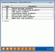 This screen appears when a new transaction or account service charge is created or copied and the lookup is selected next to Application Type on the Transaction Service Charge Fees and Waivers screen. If an Application is not selected first, this screen will appear when you attempt to select a product.