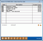 View a listing of available loan application workflow styles. To select a style, use Select. To view a detail of what loan application screens will be hidden or shown, select a style and then Detail.