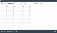 To use the calculator window, enter the desired starting base rate and increment and use Enter to recalculate a new series of rates. When done, use the backup arrow to return to the original rate screen.