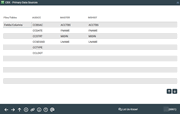 The Data Sources (F19) screen displays the Tables (files) and Columns (fields) that are used to generate the data on the selected dashboard. This information is useful should database administrators prefer to further examine the data in Report Builder, or to generate a custom report. The screen lists the tables across the top of the chart, such as AUDICC in this particular dashboard example, and the specific fields used in generating the dashboard output, such as CCDATE and CCSESSID.