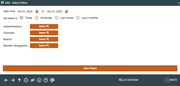 Use this screen to select the data range by entering a date or selecting a pre-configured data range (today, yesterday, last month, or last three months). Use the select buttons to select single or multiple Authentication Types, Channels, Branch, and Member Designation. Use Clear Filters to quickly clear all selections.