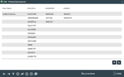The Data Sources screen displays the Tables (files) and Columns (fields) that are used to generate the data on the selected dashboard. This information is useful should database administrators prefer to further examine the data in Report Builder, or to generate a custom report. The screen lists the tables across the top of the chart, such as ISOCUDTA in this particular dashboard example, and the specific fields used in generating the dashboard output, such as IDFEEAMT and IDBIN.
