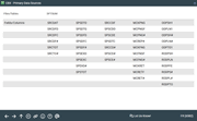 The Data Source screen displays the Tables (files) and Columns (fields) that are used to generate the data on the selected dashboard. This information is useful should database administrators prefer to further examine the data in Report Builder, or to generate a custom report. The screen lists the tables across the top of the chart, such as DFTSUM in this particular dashboard example, and the specific fields used in generating the dashboard output, such as SRCDAT and SRCDFD.