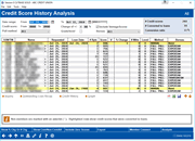 But beyond simply being a powerful marketing tool, the Credit Score History Analysis can provide an excellent snapshot of your credit report portfolio. Once you've selected your segment of the portfolio to review, select Analysis (F11) to see a statistical break down of that group.