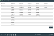 The Data Sources screen displays the Tables (files) and Columns (fields) that are used to generate the data on the selected dashboard. This information is useful should database administrators prefer to further examine the data in Report Builder, or to generate a custom report. The screen lists the tables across the top of the chart, such as PANCARD in this particular dashboard example, and the specific fields used in generating the dashboard output, such as PCREF# and PCSTATUS.