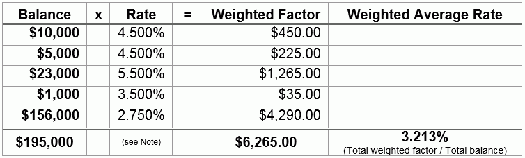 Note: Average Rate is calculated by adding all of the rates for all accounts and dividing by the number of accounts. So in the sample above the average rate would be 4.150%.