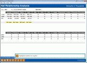 Access this screen by selecting a credit union and then "Monthly Breakdown" on the entry Learn from a Peer Net Relationship Dashboard.