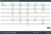 The Data Sources screen displays the Tables (files) and Columns (fields) that are used to generate the data on the selected dashboard. This information is useful should database administrators prefer to further examine the data in Report Builder, or to generate a custom report. The screen lists the tables across the top of the chart, such as HTRANS1 in this particular dashboard example, and the specific fields used in generating the dashboard output, such as ACCTBS and PRDATE.