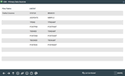 The Data Sources screen displays the Tables (files) and Columns (fields) that are used to generate the data on the selected dashboard. This information is useful should database administrators prefer to further examine the data in Report Builder, or to generate a custom report. The screen lists the tables across the top of the chart, such as LNSTAT in this particular dashboard example, and the specific fields used in generating the dashboard output, such as STATUS and BRANCH.