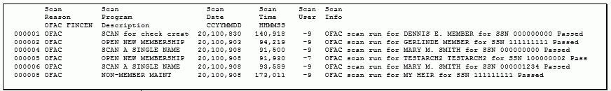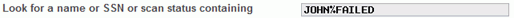 For example, if you enter this in the Look for a name or SSN or scan status containing field, you would find failed OFAC scans for John Member or Mary Johnson: