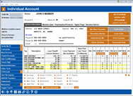 This screen, called the Phone Operator Account Processing screen, shows information on all of the member's active accounts. On this screen you can view basic information about all account types, as well as information about the membership itself, including joint owners and Household information.