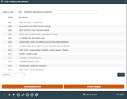 This window lets you choose from your credit union's configured Loan Product Codes. These codes determine all of the default settings and parameters for creating a new loan request.