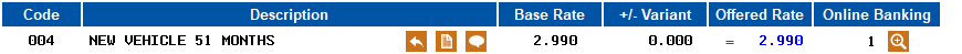 To see the rate being offered to members in online banking (for products that are configured to display in online banking), click the look up button next to the Online Banking code
