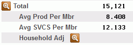 You can click the lookup next to the tier name to “drill down” to a detail screen to see more data about the members in your selected group for the selected month. If your credit union uses the household scoring method, click the lookup next to "Household Adj" to view a breakdown of members according to the scores assigned by household for the selected month. If you drill down to the member level, this allows you to access the New/Closed Membership dashboard and New/Closed Accounts dashboard for more big data information on your selected members.