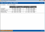 Access this screen by selecting Summary (F16) on the main Teller Activity by Day of Month screen.