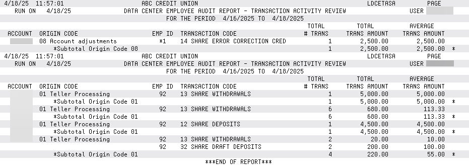 Transaction Activity Review Report (LDCETASA in CU*Spy)