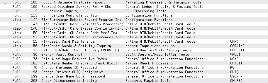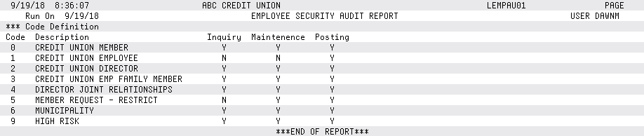 TIP: View the information included in this printed report online in the Security File Maintenance Inquiry, which includes all of this information as well as information on password changes.