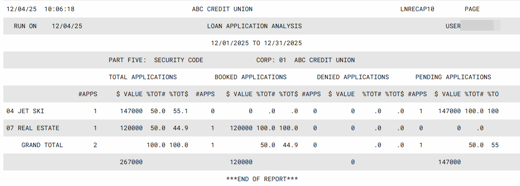 | Report Name: | LNRECAP10 | Click here to magnify |