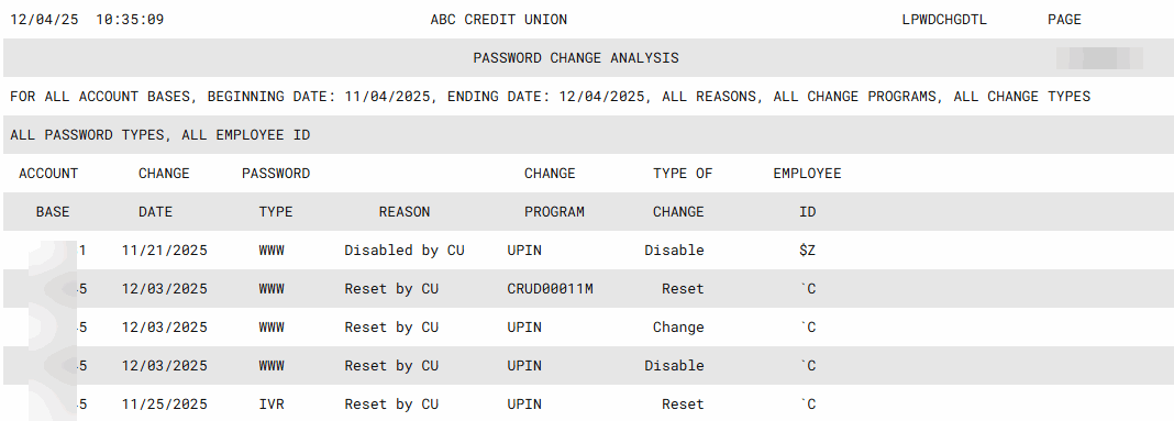 LPWDCHG-01 List Password Change Analysis 3242 LPWDCHGDTL |