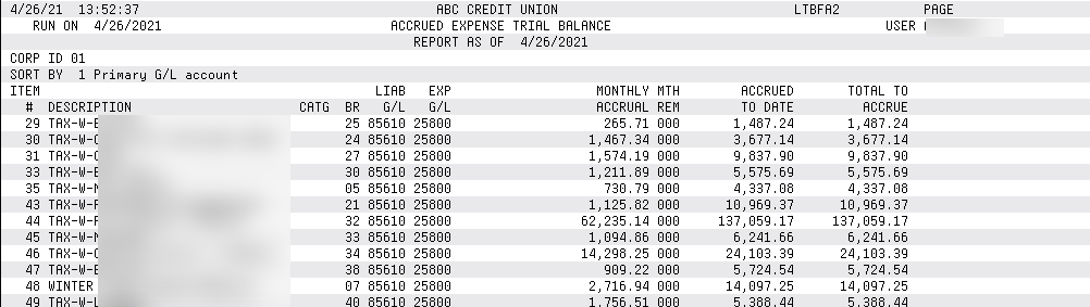 LTBFASC-01 Subsidiary Trial Balance 5671 LTBFA2 |