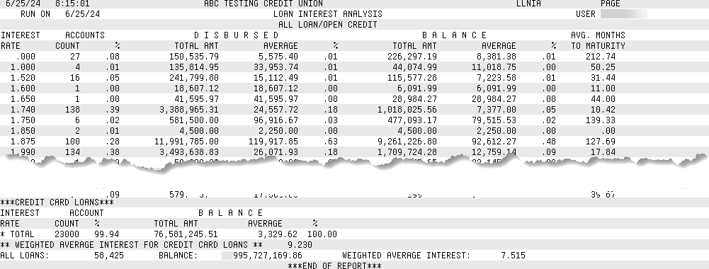 Access this screen by selecting "Loan Interest Analysis" on the entry screen.