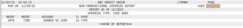 LTRANASC-01 Non-Transaction Override Report 5904 LTRANA |