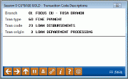 This screen lists the details of the transactions. This serves as a legend to explain the codes present on the previous screen.