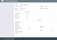 This screen will appear when selecting an existing OTB Savings account record on the initial Plastics/OTB Products Inquiry screen and then View.