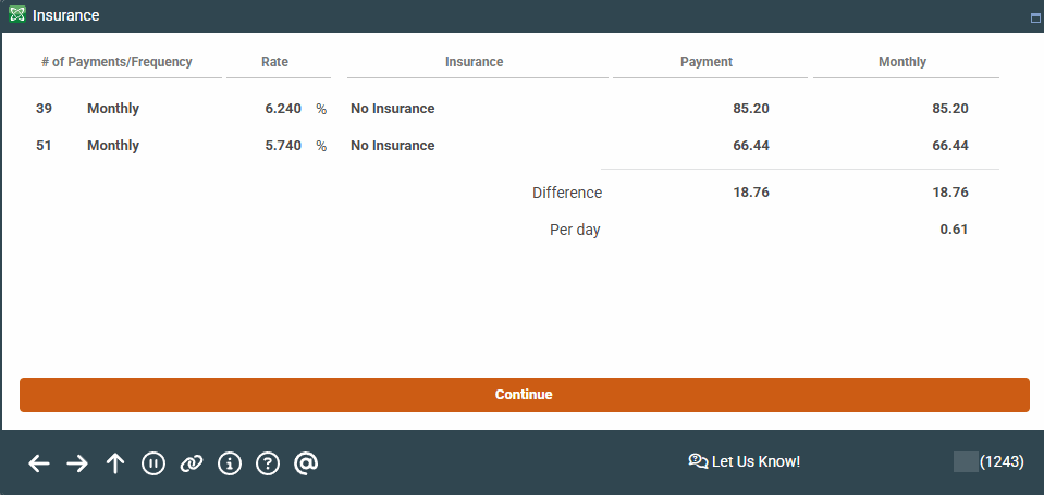 Use the forward arrow (Enter) to calculate the quote and display all of the appropriate payment options at the bottom of the screen.