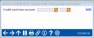 Access this screen by selecting Tool #1032 Expense Credit Card Pymts to A/P Vendors