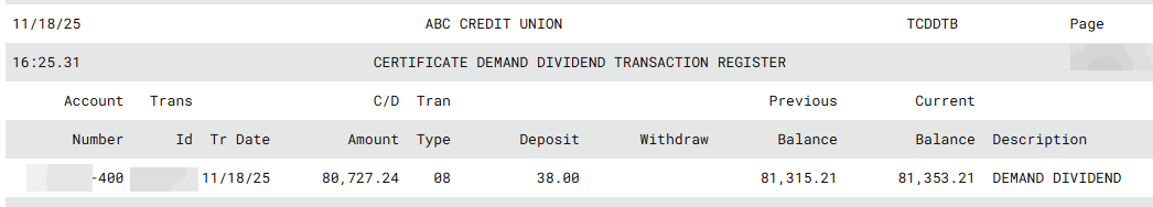 TCDDTB-01 Certificate of Deposit Demand Dividend 1473 TCDDTB |
