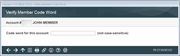 This window appears when you have activated in Xpress Teller workflow controls for a code word to be entered if one exists on the account, and the member has set up a code word.