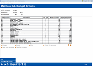 This screen is used to set up or maintain Budget Group codes. A Budget Group allows you to run similar budget or modeling calculations on a group of G/L accounts at the same time, and is also important for viewing your budget and performance on the Variance Dashboard and other budgeting tools.