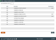 This is the first of two screens used to configure Loan Classification Codes, which are attached to individual loan accounts for the purpose of managing loan loss reserves.