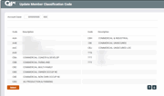 This screen is used to assign Loan Classification Codes to individual loan accounts. Start by entering the member account base and suffix, then use Enter. Additional fields will appear showing the existing code (if any). Enter the new Classification code and use Enter to record the change. Continue by entering another account number, or use the up arrow to return to the Home Page.