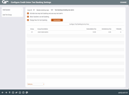 You also have the option to charge a fee for Mobile Text Banking. Once you have configured your credit union fees and fee instructions, check Activate two-way text banking and one-way text alerts to activate Mobile Text Banking at your credit union. Until you have the fees and instructions configured, it is recommended that you leave this box unchecked. Directions on setting up fees are included here. Set up instructions by clicking Instructions. Refer to the Mobile Text Banking reference guide for detailed instructions. Once Charge fees for text banking is selected, the fees listing will appear allowing you to configure fees. To add a new Fee Group, use Add Fee Group. To edit a fee, use Edit, and you will access the same screen. When done, use Add/Update to save your changes.