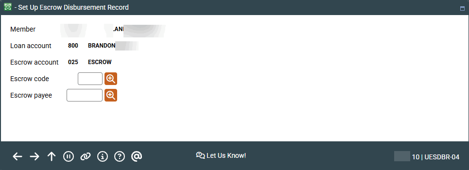 UESDBR-04 Set Up Escrow Disbursement Record Various (see below) |
