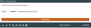 After the appropriate information is entered on the previous screen, enter is used to bring up this screen to review the total number of records. Use the "Accept Update" button to process the transfer or closure, and if selected on the previous screen, print a report of follow-ups that were transferred or closed. After accepting the update, return to the CU*BASE home screen.