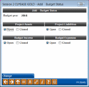 Access this screen by selecting a budget year or using Add on the Budget Status Controls screen.
