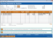 This screen lists the payments that were vouched on the Organize Payments screen that are now ready to be processed via check or ACH payment.