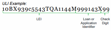 The Universal loan Identifier (ULI) is a series of numbers you give each loan to identify them. It must begin with your entire LEI number, followed by the loan or application number. This can be up to 23 alphanumeric characters long. At the end, there should be a two character ‘Check digit’. These numbers are obtained by providing the CFPB with the rest of the ULI here: https://ffiec.cfpb.gov/tools/check-digit