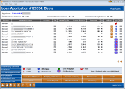 For loan applications, this screen is used to record real estate debts owed by the applicant and co-applicant, including mortgages and home equity loans, balance information for all non-real estate loan accounts held by the applicant and co-applicant. It also lists debts other than normal loan accounts, including line-of-credit accounts, credit cards, child support payments, alimony, etc.
