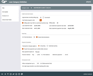 Complete the fields on this screen. Then, use Enter to move to the next loan category configuration screen.