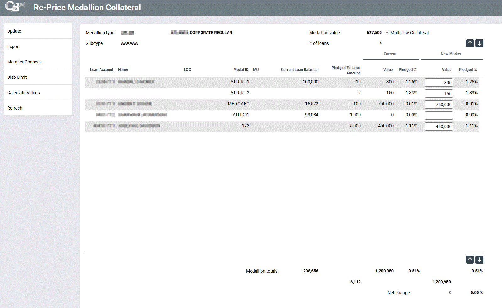 This feature is similar to the “Update Investment Market Price” tool for investments. With this tool, the collateral value can be periodically adjusted and the system automatically updates all the Medallion collateral records, recalculating LTV ratios.