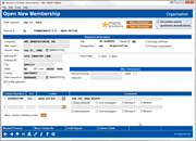 This is the first of three screens used to record membership information, both when opening a new membership and when updating information for an existing member. Some fields and buttons will appear only when updating an existing membership.