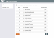 This screen displays all of the origin codes used by transactions on the core. The descriptions have been adjusted to fit better on the screens that use them. Notice the default cost/weight factors. If you have not already entered costs by individual transaction using the Transaction Management/Analysis tool described above, the core will use the figures shown here whenever cost/weight factors are needed in various analysis tools.