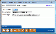 Access this screen by selecting an ATM or debit card stock and Select on the previous screen.
