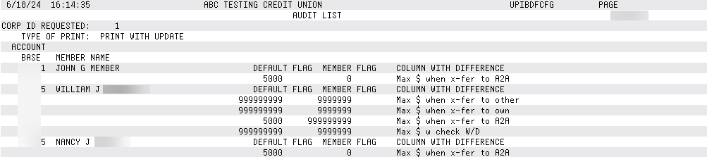 UPIBDF-01 Audit Credit Union PIB Default Profile to Members 3183 UPIBDFCFG |